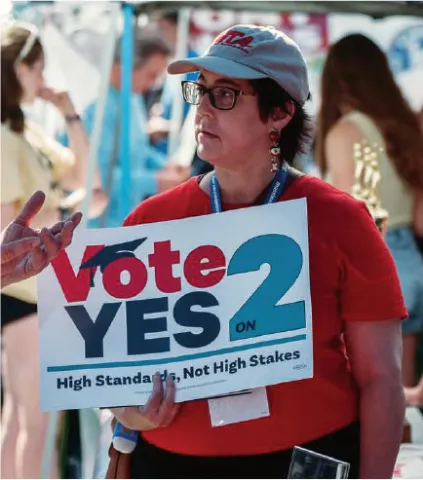 Her turf covered several dozen homes, apartments and condos occupied by likely voters, one of the hundreds worked by educators volunteering this summer and fall for the ballot campaign. The question, which appears on the Nov. 5 statewide ballot, will replace the high-stakes MCAS high school graduation requirement. In its place, local districts will certify that students have met the already-high Massachusetts standards for graduation.