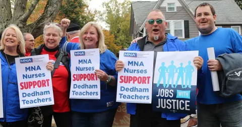 Solidarity was on display throughout the day. Members of the Massachusetts Nurses Association and other unions appeared at an afternoon rally.