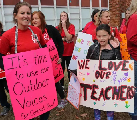 Handmade signs were in abundance as hundreds of community members gathered to show their support for educators.