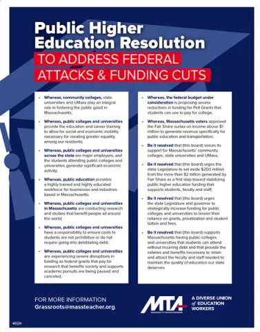 Join higher education members, activists and community members as we advocate for our cities and towns to adopt our Public Higher Education Federal Fight Back Resolution to address federal attacks and funding cuts.